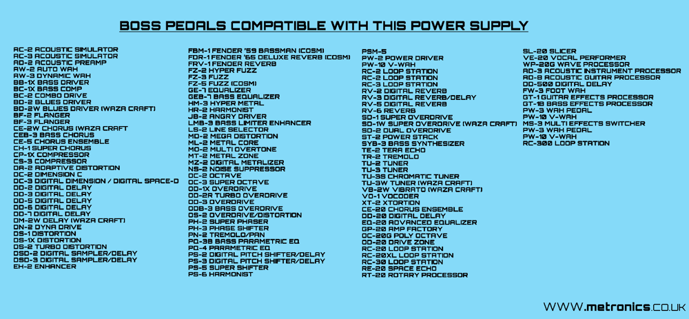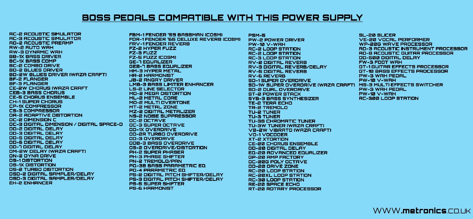 BOSS PEDALS COMPATIBLE WITH THIS POWER SUPPLY